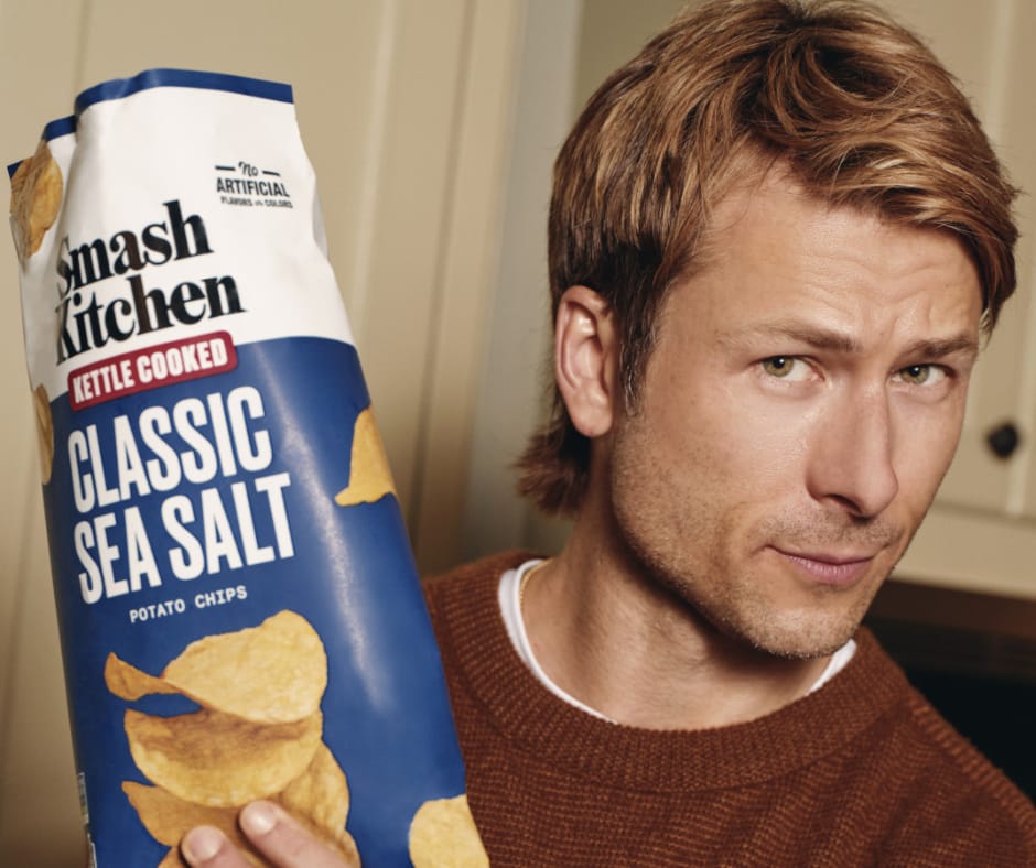 Smash Kitchen, the better-for-you food brand co-founded by actor Glen Powell, has entered the snack aisle with a new line of non-GMO kettle-cooked potato chips now available nationwide at Walmart. The debut lineup includes Classic Sea Salt, American Style BBQ, Hot Honey BBQ, and Rosemary flavors made with simple, clean ingredients and crafted for bold crunch and flavor